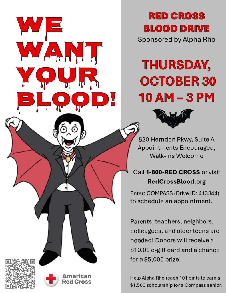 Alpha Rho, the Compass chapter of the National Homeschool Honor Society, is proud to host a Red Cross Blood Drive this week!