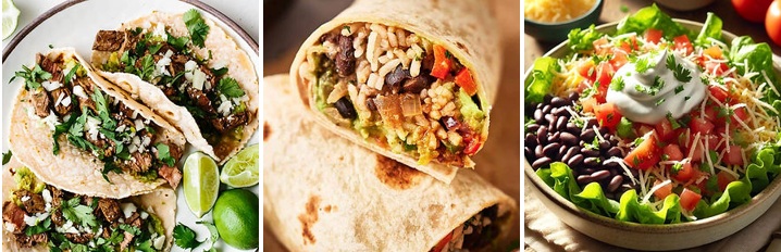 - Tacos, burritos, bowls and quesadillas. See complete menu online.