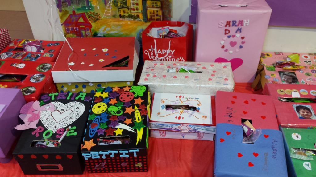 Each child should create a “mailbox” to receive Valentines. They should decorate and personalize a shoebox-sized box with paper, stickers, hearts, doilies, pictures, cut-outs, etc. Encourage your child to personalize them and design a mailbox that reflects his/her interests! Cut a slot or flap in the box that is 3/4 – 1 inch wide for others to drop in Valentines. Most children chose to put their first names on their mailboxes.